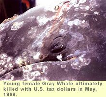 As you read this, the United States Government intends to support the illegal killing of a whale in US territorial waters for the first time in over three decades. The safe haven status that this country and its people have afforded the great whales will be shattered. The United States will then have the dubious distinction of being in the company of such whale killing nations as Japan, Norway, Iceland, and Russia. All of which are zealously pursuing a full scale resumption of commercial whaling. Worse however is the fact that once we kill our whale, the whale killers abroad cannot be stopped from killing multitudes more,...and their new best friend....The good ole US of A.